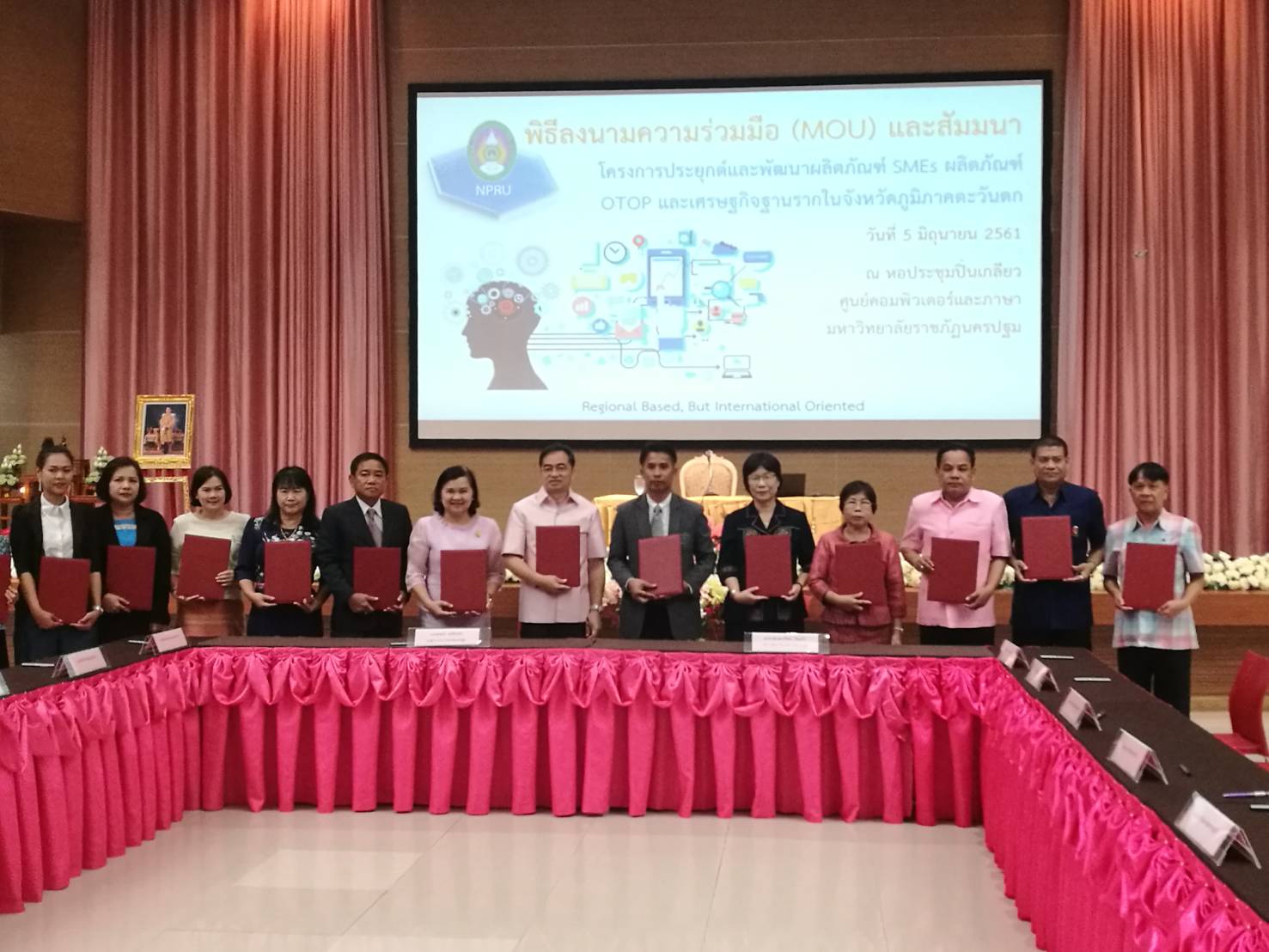 วันที่ 5 มิถุนายน 2561 นายสุทธิรักษ์ หงสะมัต พัฒนาการจังหวัดราชบุรี ร่วมพิธีลงนามความร่วมมือ (MOU) และสัมมนาโครงการประยุกต์และพัฒนาผลิตภัณฑ์ SMEs และ ผลิตภัณฑ์ OTOP และเศรษฐกิจฐานรากในจังหวัดภูมิภาคตะวันตก ณ หอประชุม ปิ่นเกลียว ศูนย์คอมพิวเตอร์และภาษา มหาวิทยาลัยราชภัฏนครปฐม ในการนี้ มีตัวแทนสำนักงานพัฒนาชุมชนจังหวัด สำนักงานพาณิชย์จังหวัดในจังหวัดภูมิภาคตะวันตกและตัวแทนมหาวิทยาลัยราชภัฏนครปฐมร่วมพิธีลงนามความร่วมมือด้วย