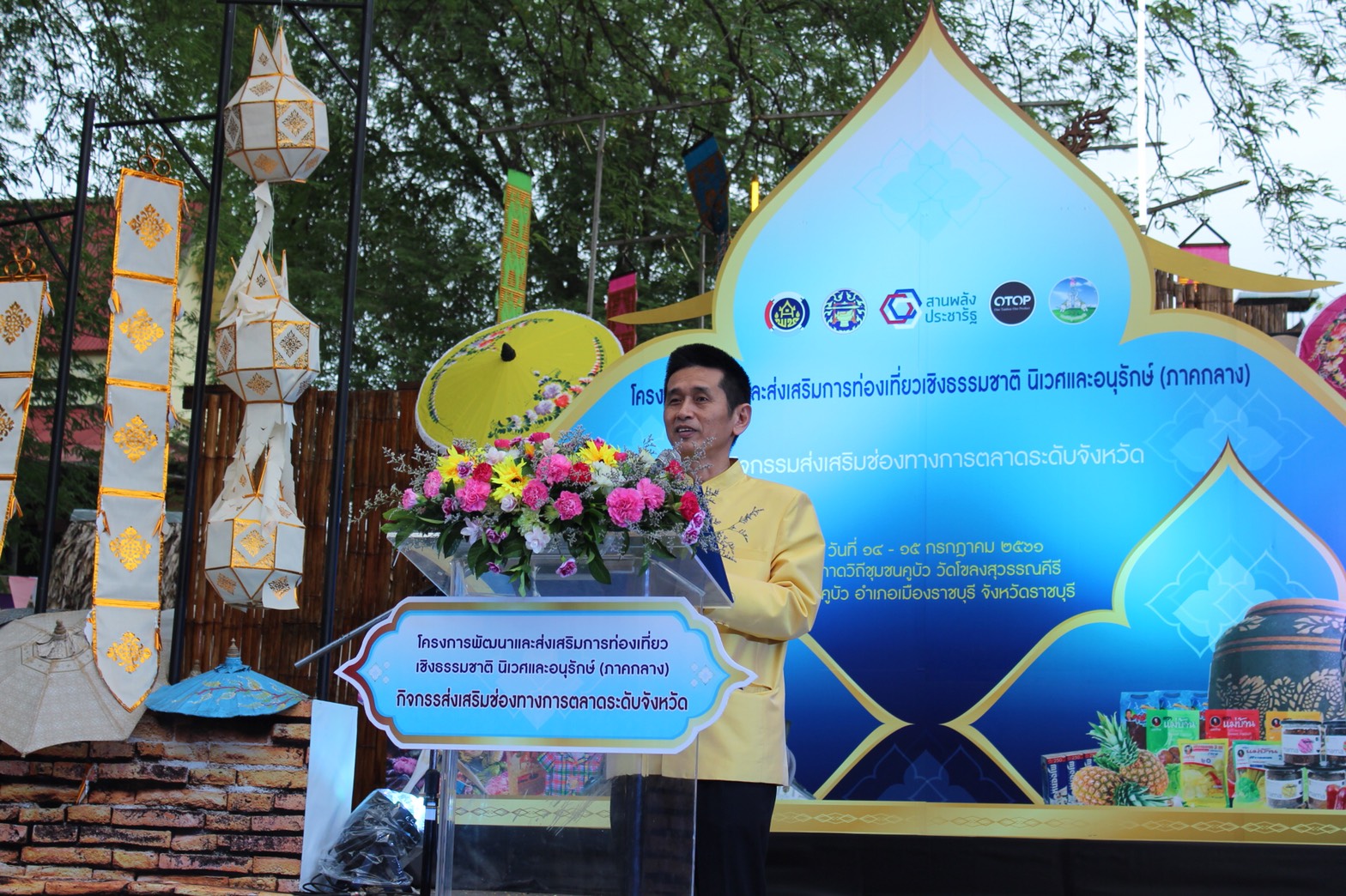 วันที่ 14 กรกฎาคม 2561 เวลา 17.00 น. ณ กาดวิถีชุมชนคูบัว วัดโขลงสุวรรณคีรี ตำบลคูบัว อำเภอเมืองราชบุรี จังหวัดราชบุรี นายชยาวุธ จันทร ผู้ว่าราชการจังหวัดราชบุรี มอบหมายให้นายวิสาห์ พูลศิริรัตน์ รองผู้ว่าราชการจังหวัดราชบุรี เป็นประธานเปิดงานตามโครงการพัฒนาและส่งเสริมการท่องเที่ยวเชิงธรรมชาติ นิเวศน์และอนุรักษ์(ภาคกลาง)โดยมี นายสุทธิรักษ์ หงสะมัต พัฒนาการจังหวัดราชบุรี กล่าวรายงาน