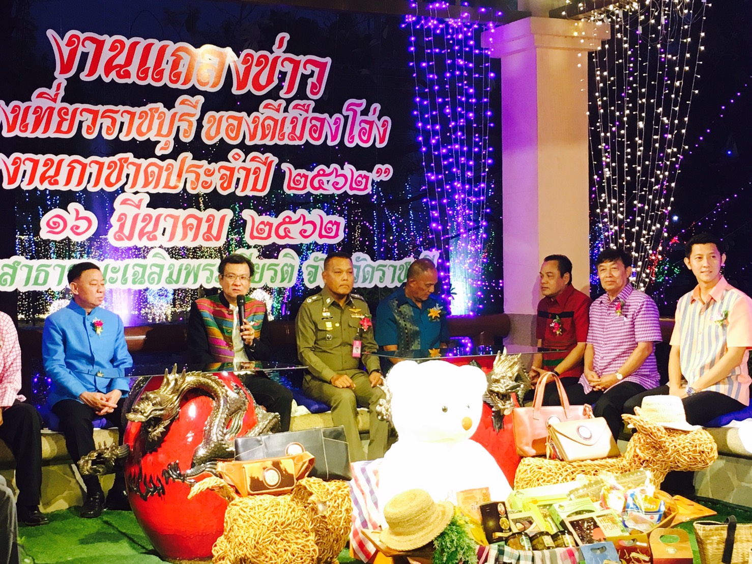 16 มีนาคม 2562 เวลา 19.00 น. ณ สวนสาธารณะเฉลิมพระเกียรติ ฉลองสิริราชสมบัติครบ 60 ปี จังหวัดราชบุรี นายชยาวุธ จันทร ผู้ว่าราชการจังหวัดราชบุรี เป็นประธานในการแถลงข่าวงานท่องเที่ยวราชบุรี ของดีเมืองโอ่งและงานกาชาด ประจำปี 2562 จัดงานระหว่างวันที่ 27 -31 มีนาคม 2562 ณ บริเวณโรงยิมเนเซี่ยมและสวนสาธารณะเฉลิมพระเกียรติ ฉลองสิริราชสมบัติครบ 60 ปี ในการนี้ นายสุทธิรักษ์ หงสะมัต พัฒนาการจังหวัดราชบุรี ได้ร่วมแถลงข่าวการจัดงานในครั้งนี้ด้วย โดยสำนักงานพัฒนาชุมชนจังหวัดราชบุรี เป็นเจ้าภาพการจัดแสดงและจำหน่ายสินค้า โดยแบ่งเป็น โซนสินค้า OTOP โซน D-HOPE โซนชุมชนท่องเที่ยว OTOP นวัตวิถี และโซนของเด่นอำเภอ ตลอดจนกิจกรรมการประกวดธิดาโอ่ง ซึ่งเปิดรับสมัคร ตั้งแต่วันที่ 18-22 มีนาคม 2562 ณ สำนักงานพัฒนาชุมชนจังหวัด และสำนักงานพัฒนาชุมชนอำเภอทุกอำเภอ