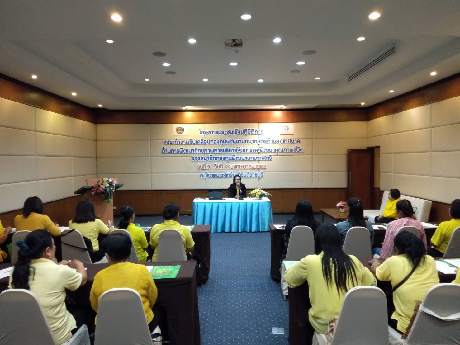 วันที่ 22 พฤษภาคม 2562 เวลา 09.00 น. ณ โรงแรมเวสเทิร์นแกรนด์ ราชบุรี อำเภอเมืองราชบุรี จังหวัดราชบุรี นางสาวนิภา ทองก้อน หัวหน้ากลุ่มงานยุทธศาสตร์การพัฒนาชุมชน รักษาราชการแทนพัฒนาการจังหวัดราชบุรี เป็นประธานในการประชุมเชิงปฏิบัติการคณะทำงานขับเคลื่อนกองทุนพัฒนาบทบาทสตรีตำบล/เทศบาล ด้านการพัฒนาศักยภาพการบริหารจัดการและพัฒนาคุณภาพชีวิตของสมาชิกกองทุนพัฒนาบทบาทสตรี รุ่นที่ 3 โดยมีกลุ่มเป้าหมาย ได้แก่ คณะทำงานขับเคลื่อนกองทุนพัฒนาบทบาทสตรีตำบล/เทศบาล จากอำเภอจอมบึง และเจ้าหน้าที่พัฒนาชุมชน