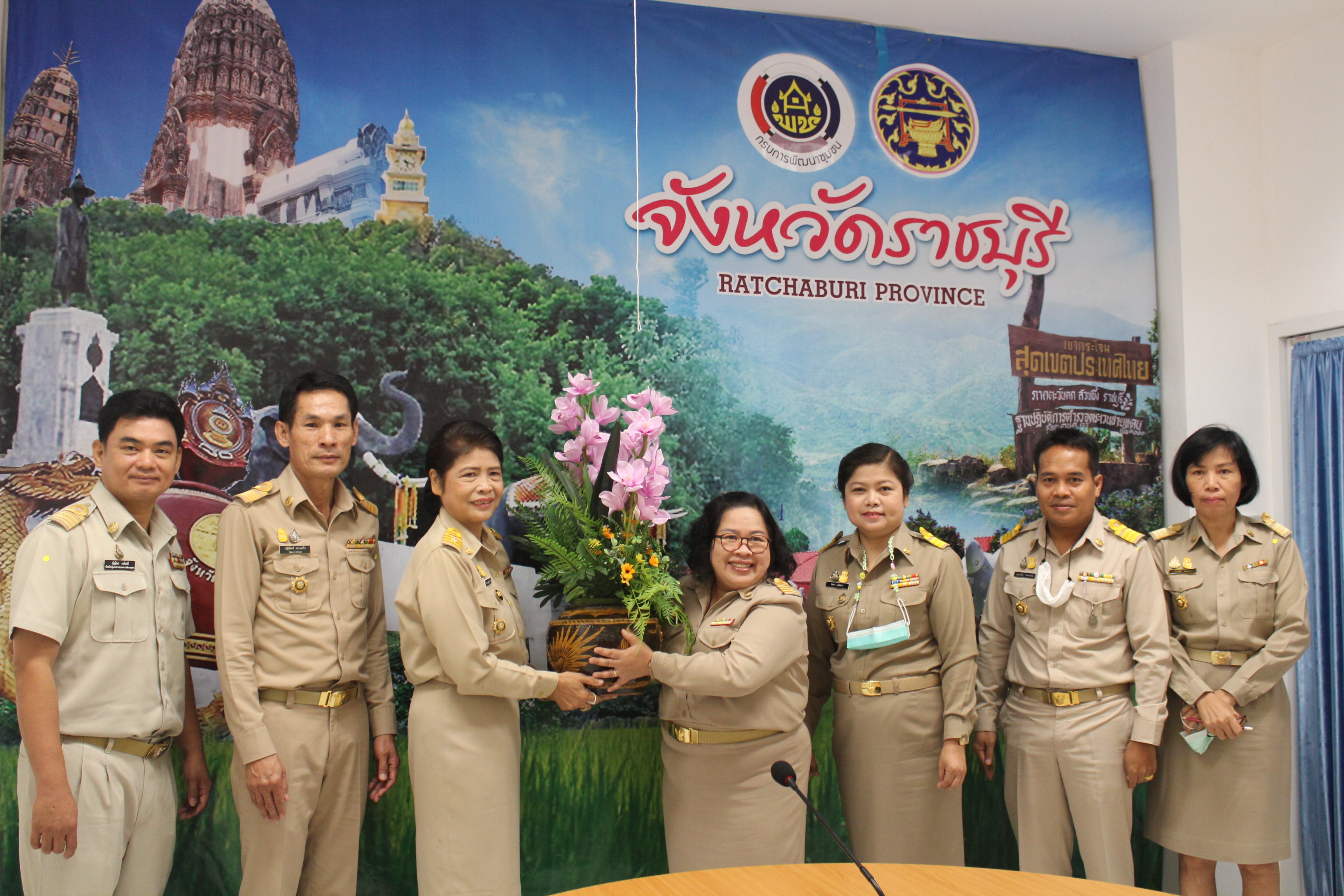 วันที่ 16 พฤศจิกายน 2563 เวลา 08.30 น. ณ สำนักงานพัฒนาชุมชนจังหวัดราชบุรี ชั้น 3 ศาลากลางจังหวัดราชบุรี ผู้อำนวยการ กลุ่มงานฯ พร้อมด้วยพัฒนาการอำเภอ, เครือข่าย OTOP จังหวัด, ประธานชมรมอาสาพัฒนาชุมชนจังหวัด, ประธานกองทุนแม่ของแผ่นดิน, ประธาน กทบ. และเจ้าหน้าที่พัฒนาชุมชนจังหวัดราชบุรี ร่วมต้อนรับ นางยุพิน เศรษฐศักดาศิริ พัฒนาการจังหวัดราชบุรี ในโอกาสเดินทางมารับตำแหน่งใหม่