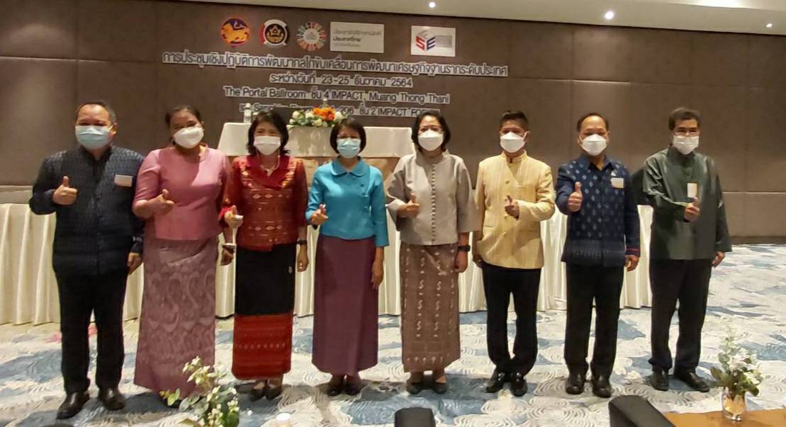 ? นายสมคิด จันทมฤก อธิบดีกรมการพัฒนาชุมชน ประธานในพิธีเปิดการประชุมเชิงปฏิบัติการพัฒนากลไกการขับเคลื่อนเศรษฐกิจฐานรากระดับประเทศและมอบนโยบายการขับเคลื่อนเศรษฐกิจฐานรากและประชารัฐ พร้อมด้วย คณะผู้บริหาร ผู้อำนวยการฯจากส่วนกลาง ซึ่งจัดขึ้นระหว่างวันที่ 23 -25 ธันวาคม 2564 ณ ห้องประชุม The Portal BallRoomและห้องประชุม Sapphire 204-206 ฮอล์ล 4 อิมแพ็คเมืองทองธานี อำเภอปากเกร็ด จังหวัดนนทบุรี