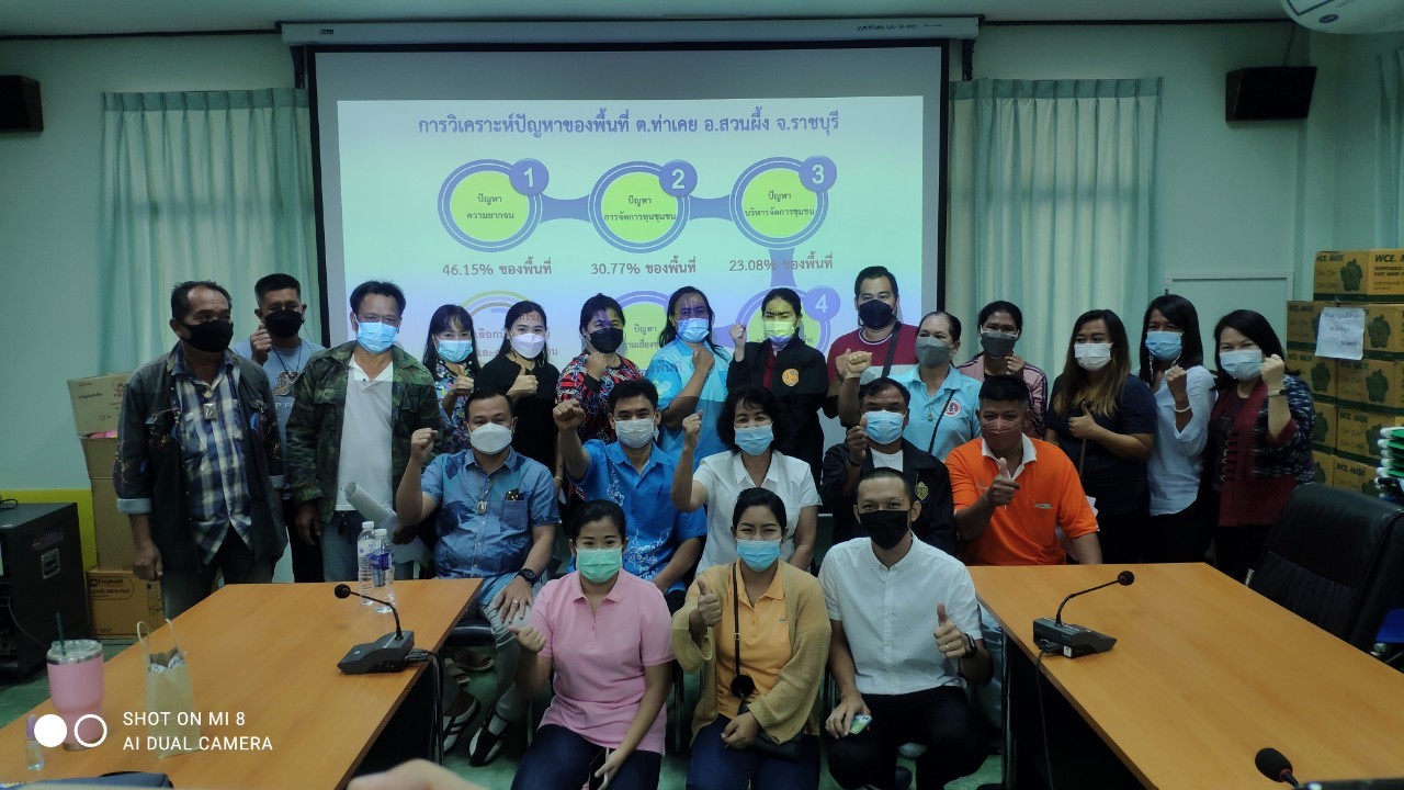 ? นางยุพิน เศรษฐศักดาศิริ พัฒนาการจังหวัดราชบุรี มอบหมายให้ นายณัฎฐิพล วงศ์เมธี ผู้อำนวยการกลุ่มงานสารสนเทศการพัฒนาชุมชน พร้อมด้วย ทีมงานกลุ่มงานสารสนเทศการพัฒนาชุมชน ดำเนินโครงการการจัดทำสารสนเทศตำบลต้นแบบเพื่อพัฒนาคุณภาพชีวิต ประจำปีงบประมาณ พ.ศ. 2565 ตำบลที่ 2 ณ ห้องประชุมองค์การบริหารส่วนตำบลท่าเคย อำเภอสวนผึ้ง จังหวัดราชบุรี โดยมี พัฒนาการอำเภอสวนผึ้ง ทีมงานพัฒนาชุมชนอำเภอสวนผึ้ง และผู้นำชุมชนจำนวน 13 คน เข้าร่วมโครงการฯ