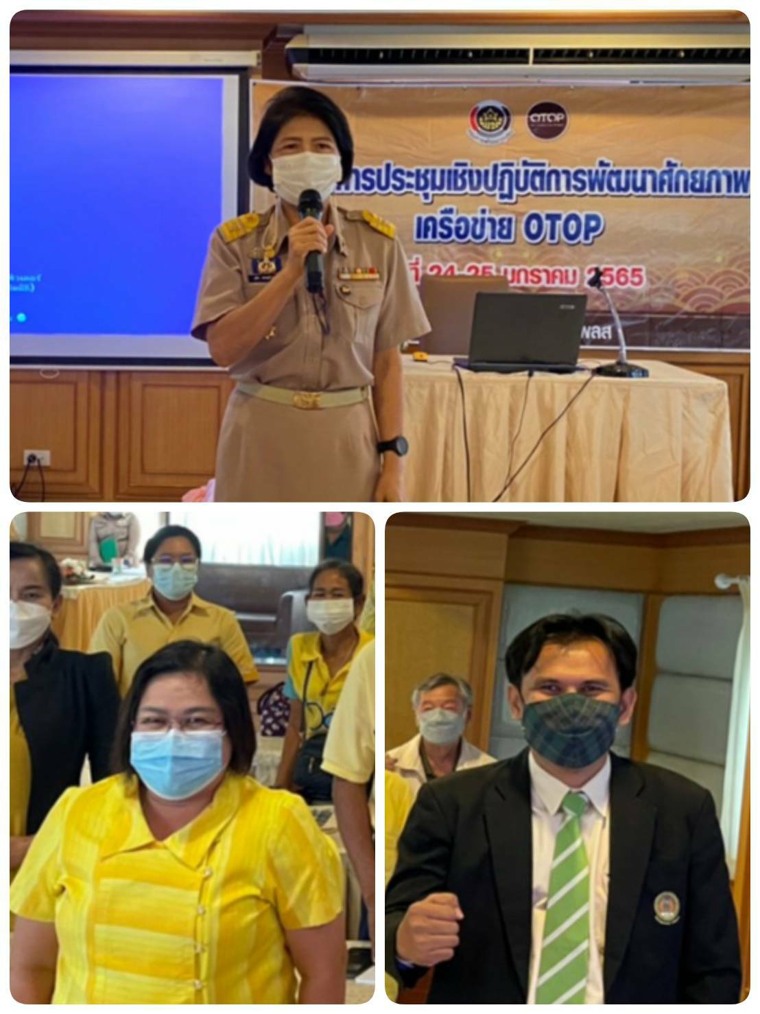 ?นางยุพิน เศรษฐศักดาศิริ พัฒนาการจังหวัดราชบุรี พร้อมด้วย นางทศมนพร พุทธจันทรา ผู้อำนวยการกลุ่มงานส่งเสริมการพัฒนาชุมชน และเจ้าหน้าที่พัฒนาชุมชนกลุ่มงานส่งเสริมฯ จัดโครงการประชุมเชิงปฏิบัติการพัฒนาศักยภาพเครือข่าย OTOP ณ โรงแรมแพรวอาภา เพลส อำเภอเมืองราชบุรี จังหวัดราชบุรี ระหว่างวันที่ 24-25 มกราคม 2565 เป้าหมายประกอบด้วย คณะกรรมการเครือข่าย OTOP จำนวน 20 คน