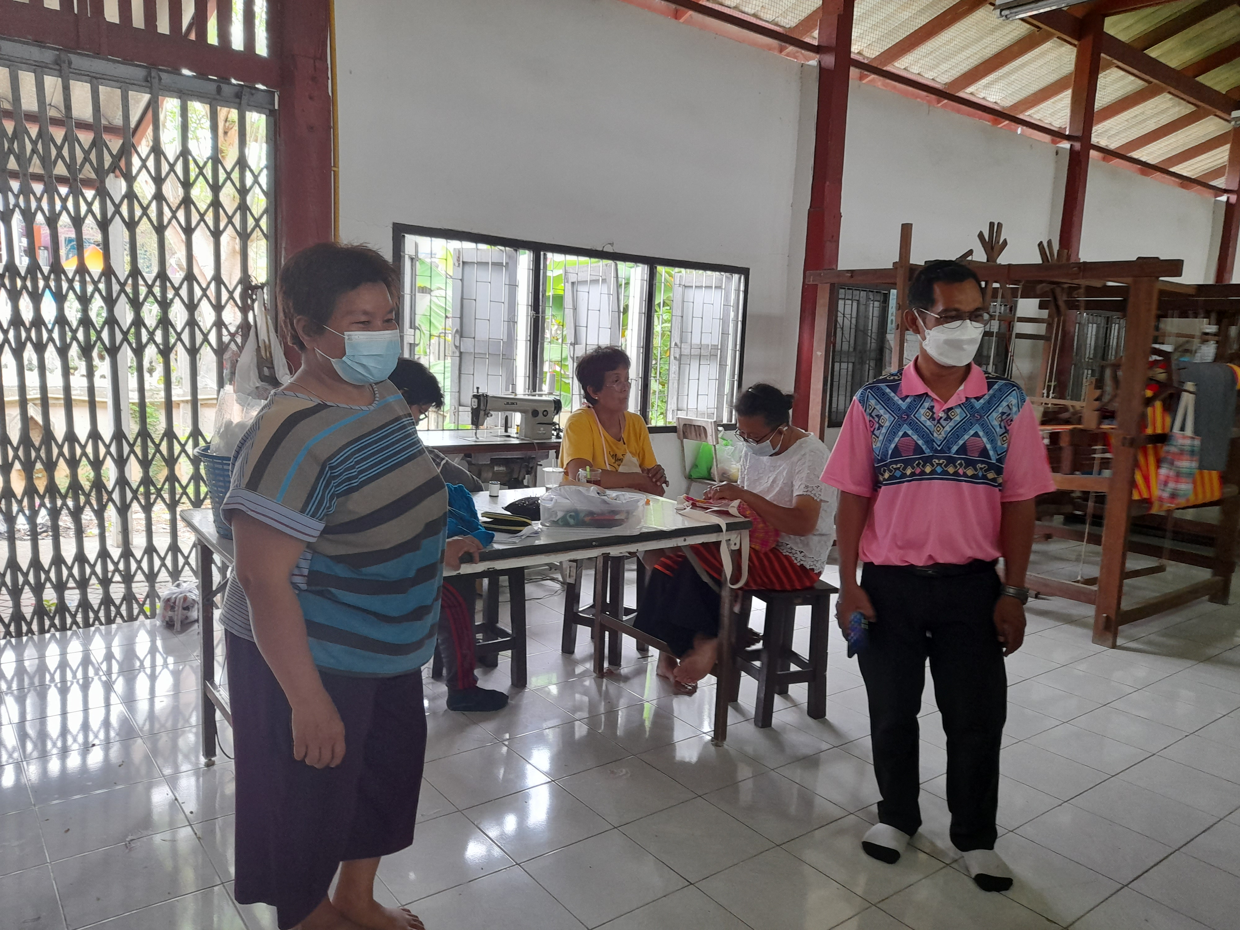 นางสาวลัดดา ดอกไม้หอม พัฒนาการอำเภอบ้านโป่ง พร้อมด้วย นายแวนิมะ สาเหาะ นักวิชาการพัฒนาชุมชนปฏิบัติการ ลงพื้นที่ตรวจเยี่ยมการพัฒนาผลิตภัณฑ์ของ “กลุ่มผ้ามอญทอมือบ้านม่วง” ตำบลบ้านม่วง อำเภอบ้านโป่ง จังหวัดราชบุรี ณ พิพิธภัณฑ์ผ้ามอฐทอมือบ้านม่วง ที่รวมกลุ่มพัฒนาผลิตภัณฑ์ผ้าทอมือเป็นกระเป๋าถือสตรี โดยการนำผ้าทอมือมอญที่มีตำหนิ หรือลวดลายการทอไม่สวยงาม อันเป็นชิ้นงานผ้าทอของนักเรียน และประชาชนที่มาฝึกหัดเรียนทอผ้าใหม่ ๆ คณะกรรมการกลุ่มผ้ามอญทอมือ จึงนำผ้าเหล่านั่นมาพัฒนาเป็นผลิตภัณฑ์ตัวใหม่ เพื่อเพิ่มมูลค่าสินค้า และใช้เวลาว่างให้เกิดประโยชน์ โดยได้รับการสนับสนุนการดำเนินงาน วิทยากร จาก กศน.อำเภอบ้านโป่ง