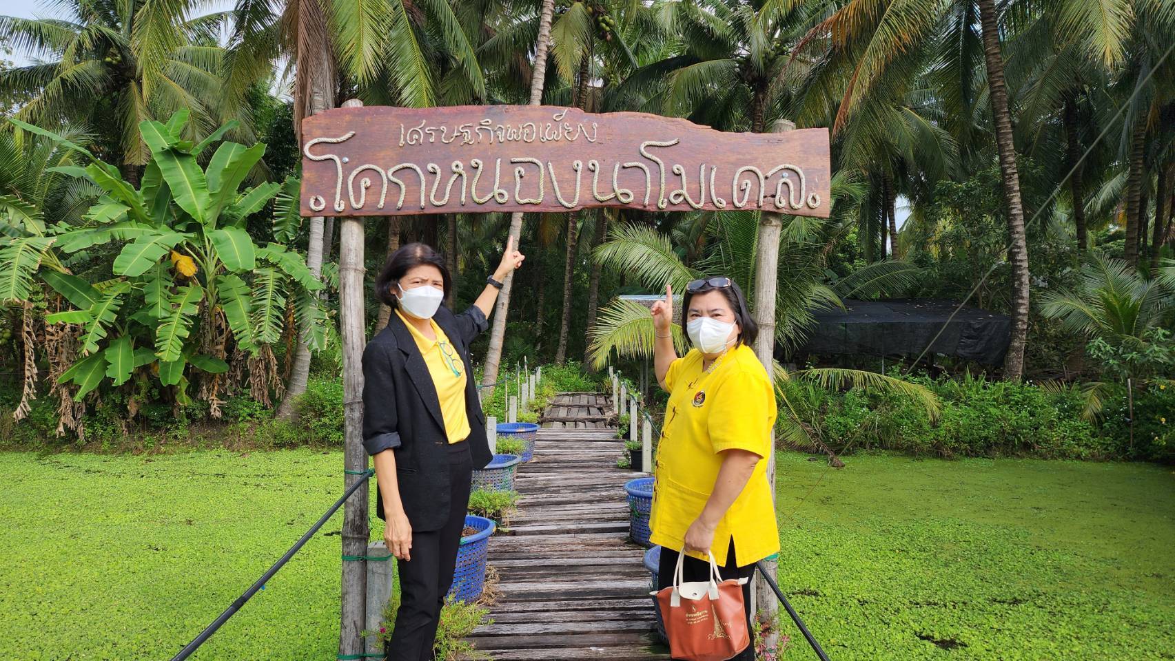 ?นางยุพิน เศรษฐศักดาศิริ พัฒนาการจังหวัดราชบุรี ลงพื้นที่เยี่ยมชมการดำเนินงานศูนย์เรียนรู้ โคก หนอง นา รายนายพรชัย บุพผามาศ บ้านเลขที่ 300 หมู่ที่ 2 ตำบลท่านัด อำเภอดำเนินสะดวก จังหวัดราชบุรี ซึ่งมี นางนวลนิตย์ สังข์กระเเสร์ พัฒนาการอำเภอดำเนินสะดวก พร้อมด้วย เจ้าหน้าที่พัฒนาชุมชนอำเภอดำเนินสะดวกและนายพรชัย บุพผามาศ เจ้าของแปลงโคก หนอง นา ให้การต้อนรับและอำนวยความสะดวกในการเยี่ยมชม ซึ่งนายพรชัย เล่าว่า ได้ดำเนินการปรับพื้นที่ดินของตน ขนาดพื้นที่ 6 ไร่ และได้พัฒนาเป็นศูนย์เรียนรู้ และนำความรู้ที่เกี่ยวกับเศรษฐกิจพอเพียงมาปรับใช้ โดยทำออกมาในรูปแบบฐานเรียนรู้ จำนวน 8 ฐาน ดังนี้