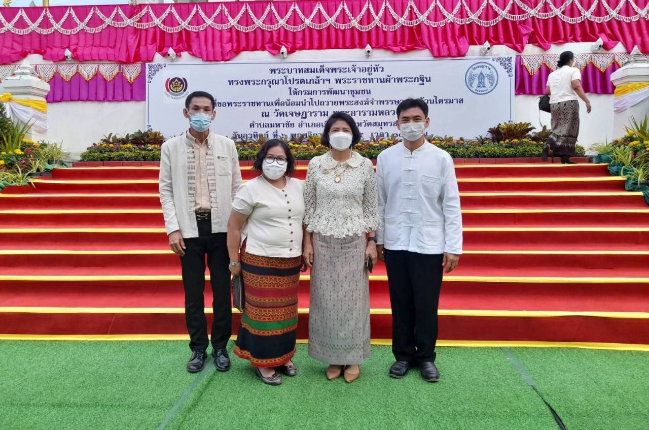 ?นายอรรษิษฐ์ สัมพันธรัตน์ อธิบดีกรมการพัฒนาชุมชน เป็นประธานพิธีสมโภชองค์ผ้าพระกฐินพระราชทาน ประจำปี 2565 โดยมีผู้ว่าราชการจังหวัดสมุทรสาคร รองอธิบดีกรมการพัฒนาชุมชน คณะผู้บริหารและข้าราชการกรมการพัฒนาชุมชนทั้งในส่วนกลางและส่วนภูมิภาคจากจังหวัดต่าง ๆ รวมถึงพี่น้องประชาชนผู้มีจิตศรัทธาเข้าร่วมพิธีฯ