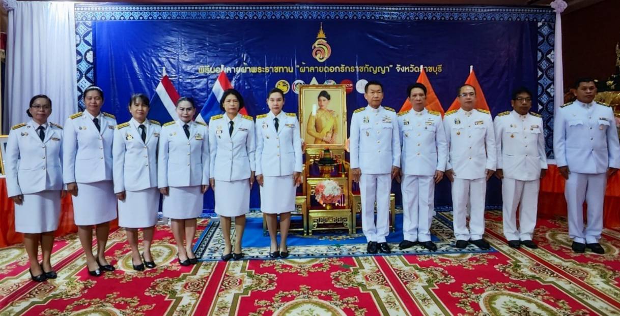 หลังจากนั้น ผู้ว่าราชการจังหวัดราชบุรี ได้เชิญแบบผ้าลายพระราชทาน “ผ้าลายดอกรักราชกัญญา” มอบให้กลุ่มเป้าหมาย ดังนี้