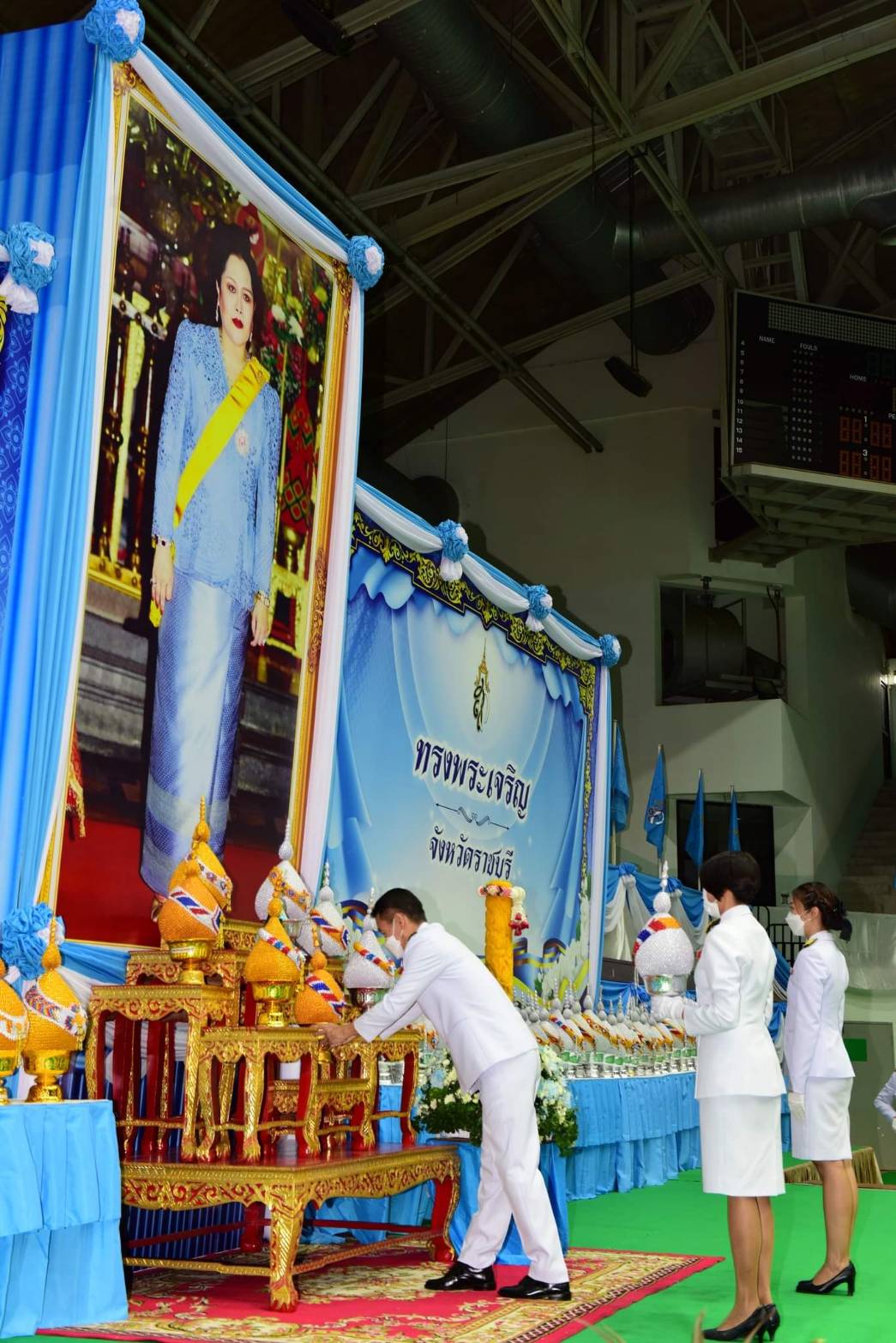 ?โดย ผวจ.ราชบุรี นำประกอบพิธีจุดเทียนและนำกล่าวถวายพระพรชัยมงคล ร่วมร้องเพลงสรรเสริญพระบารมี จุดเทียนถวายพระพรชัยมงคล และร่วมร้องเพลง สดุดีพระแม่ไทย ในการนี้ นางยุพิน เศรษฐศักดาศิริ พัฒนาการจังวัดราชบุรี มอบหมายให้ นายณัฎฐิพล วงศ์เมธี ผู้อำนวยการกลุ่มงานสารสนเทศการพัฒนาชุมชน พร้อมด้วย นางสาวเเพรวพรรณ ภูมิวัน นักวิชาการพัฒนาชุมชนชำนาญการ นางสาวชุติมา วิจิตรวงศ์วาน นักวิชาการพัฒนาชุมชนชำนาญการ และนายสถาพร คงสอน นักวิชาการพัฒนาชุมชนปฏิบัติการ ได้เข้าร่วมกิจกรรมถวายเครื่องราชสักการะ วางพานพุ่มเงิน พุ่มทอง และจุดเทียนชัยถวายพระพรชัยมงคล เฉลิมพระเกียรติฯ