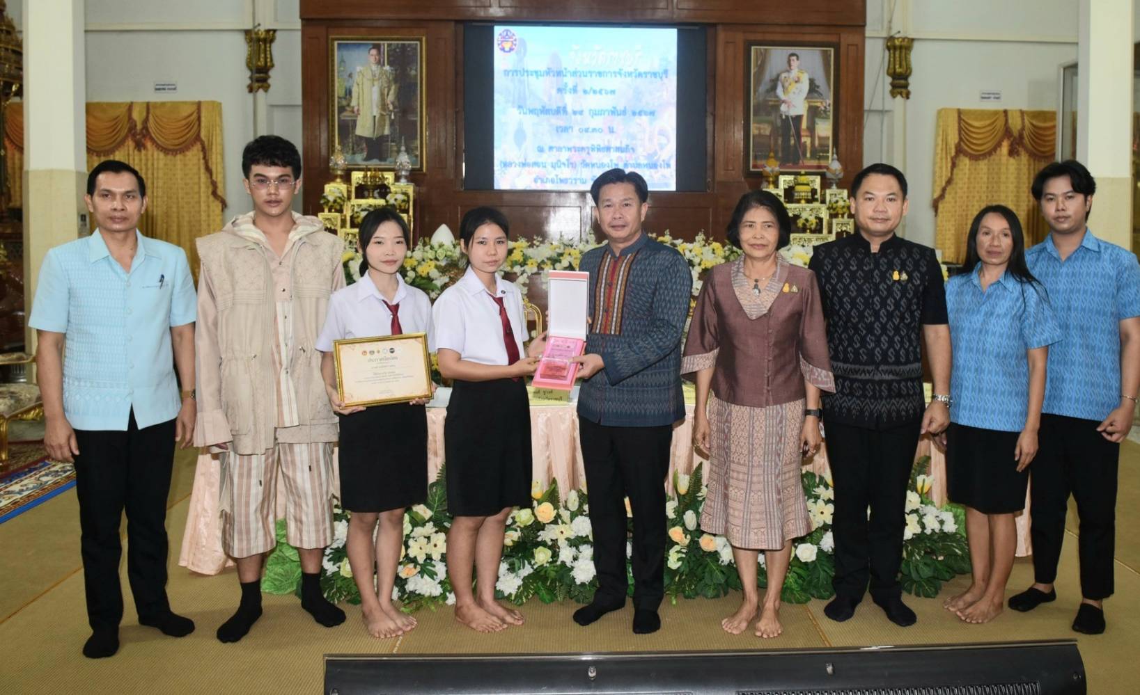 💢 นายเกียรติศักดิ์ ตรงศิริ ผู้ว่าราชการจังหวัดราชบุรี เป็นประธานมอบโล่ และประกาศนียบัตรแก่ผู้ออกแบบตัดเย็บ “ชุดผ้าไทยใส่ให้สนุก” โดยมี นางยุพิน เศรษฐศักดาศิริ พัฒนาการจังหวัดราชบุรีกล่าวรายงานโครงการดังกล่าว