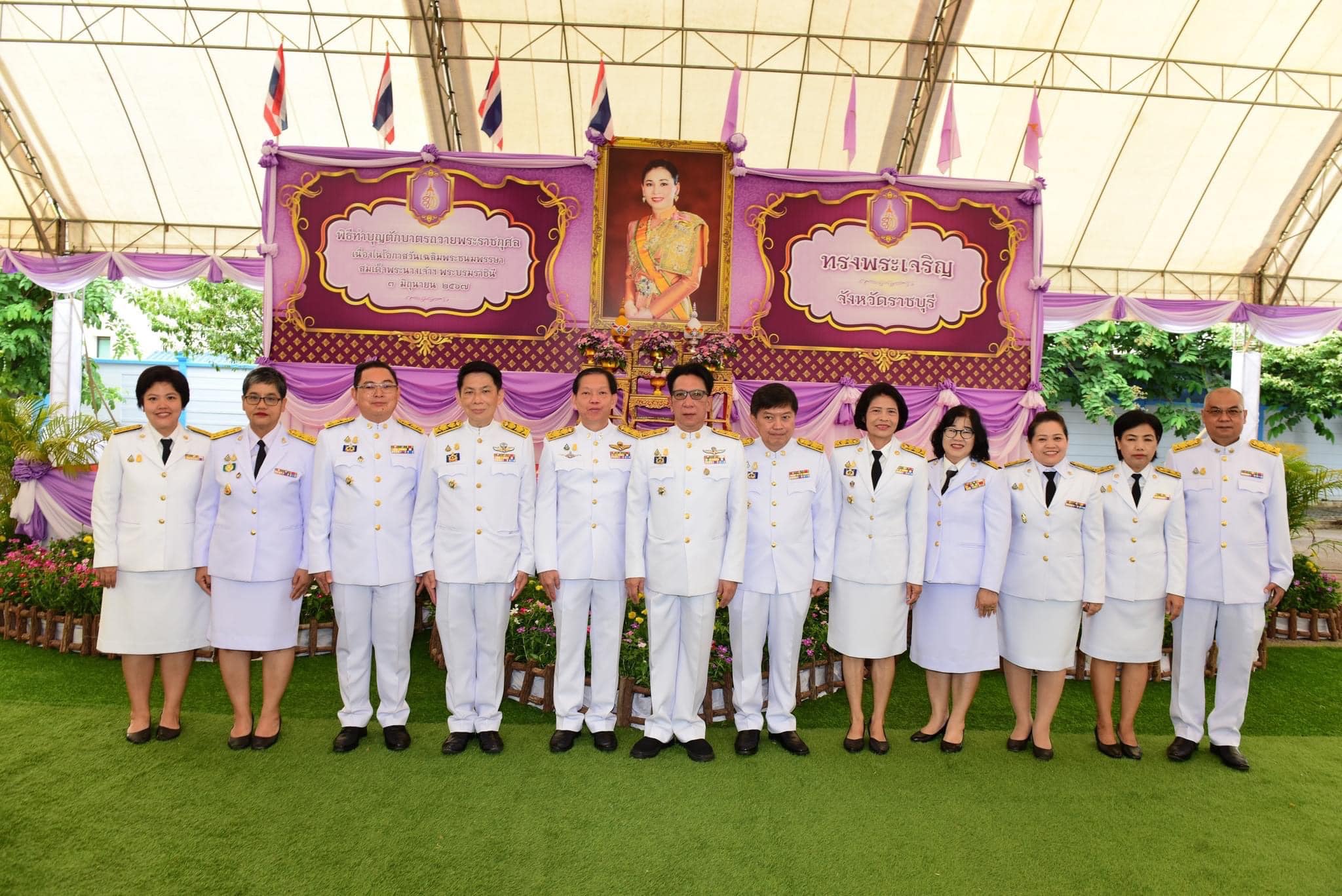 💠 โดยผู้ว่าราชการจังหวัดราชบุรีจุดเทียนบูชาพระรัตนตรัย เปิดกรวยกระทงดอกไม้ธูปเทียนแพหน้าพระฉายาลักษณ์สมเด็จพระนางเจ้าฯ พระบรมราชินี เจ้าหน้าที่อาราธนาศีล พระสงฆ์ให้ศีลและเจริญพระพุทธมนต์ ภายในพีธีมี พระธรรมปัญญาภรณ์ ที่ปรึกษาเจ้าคณะภาค 15 เจ้าอาวาสวัดมหาธาตุวรวิหาร จ.ราชบุรี เป็นประธานฝ่ายสงฆ์ นำพระสงฆ์สมณศักดิ์รวม 10 รูป เจริญพระพุทธมนต์ จากนั้นผู้ว่าราชการจังหวัดราชบุรีนำข้าราชการ และประชาชนทุกหมู่เหล่า ตักบาตรข้าวสารอาหารแห้งแด่พระสงฆ์ 47 รูป