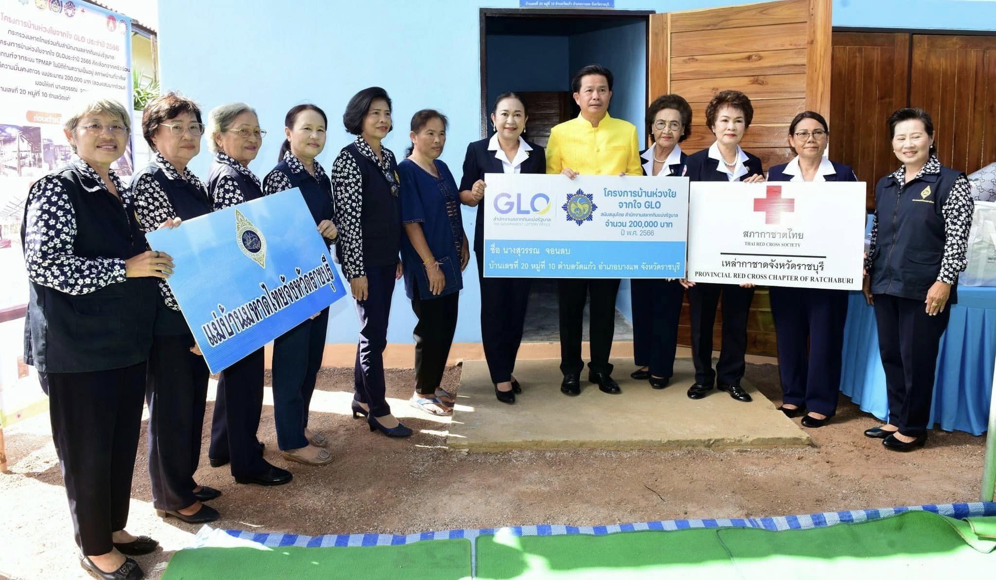 💠 โครงการบ้านห่วงใยจากใจ GLO สำนักงานสลากกินแบ่งรัฐบาล ได้ร่วมกับ กรมการพัฒนาชุมชนกระทรวงมหาดไทย จัดทำขึ้นเพื่อจัดสร้างบ้านให้กับประชาชนที่มีบ้านพักอาศัยไม่มั่นคงถาวร และแก้ปัญหาความเดือดร้อนของประชาชน ในระบบ TPMAP โดยจังหวัดราชบุรีได้รับงบประมาณการก่อสร้าง จำนวน 1 หลัง หลังละ 200,000 บาท ซึ่งได้พิจารณาคัดเลือกครอบครัวของ นางสุวรรณ จอนลบ บ้านเลขที่ 20 หมู่ที่ 10 ต.วัดแก้ว อ.บางแพ จ.ราชบุรี เป็นครัวเรือนเป้าหมายที่ได้รับการสนับสนุนจากโครงการนี้ เนื่องจากครัวเรือนมีสภาพบ้านอาศัยที่ไม่มีความมั่นคงถาวร โครงสร้างบ้านไม่มีความแข็งแรง มีฝาบ้านชำรุด และประตูหน้าต่างอยู่ในสภาพไม่คงทนกับการใช้งาน ซึ่งจังหวัดราชบุรีได้รับงบประมาณดำเนินการก่อสร้างปี 2565 และ 2566 รวมทั้งสิ้น 2 หลัง