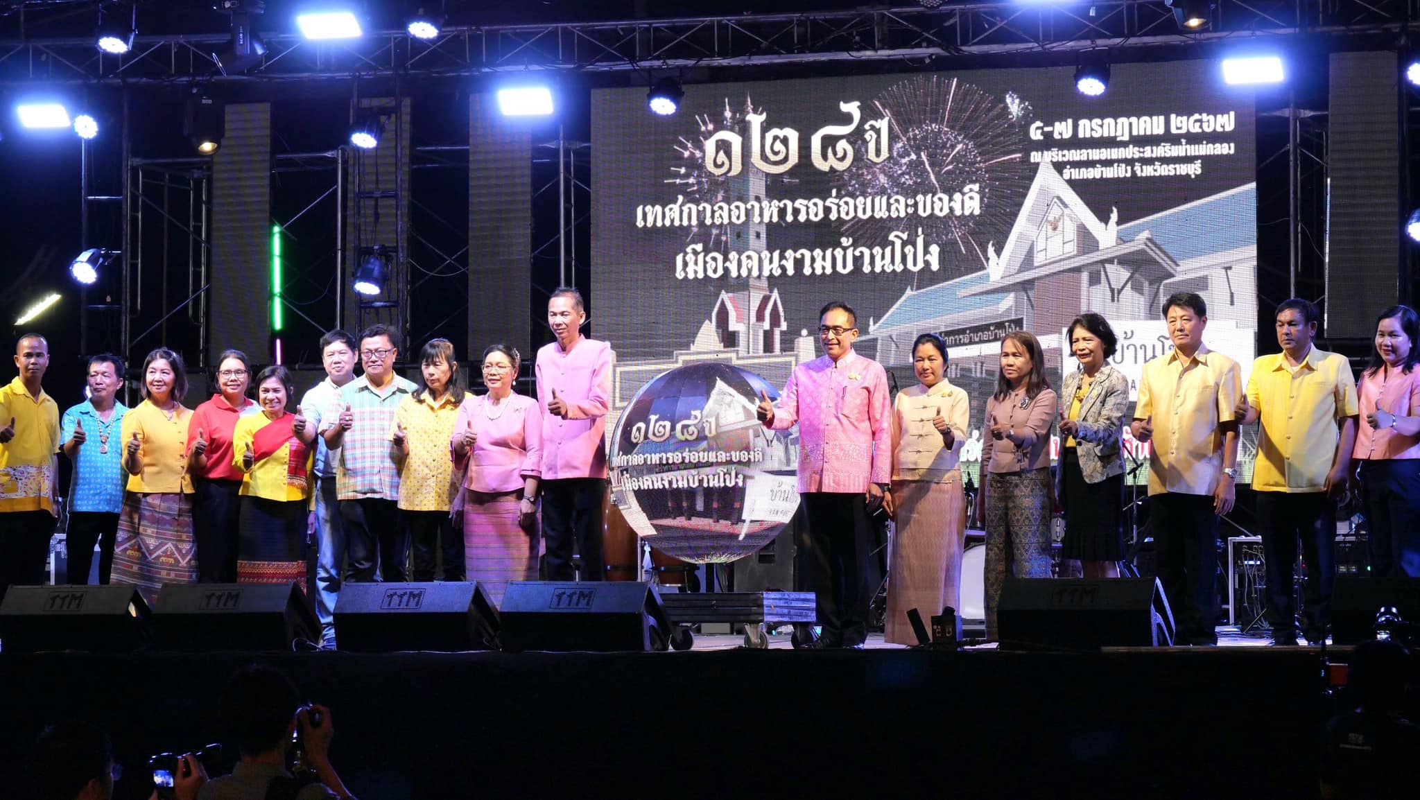 💠 นายเกียรติศักดิ์ ตรงศิริ ผู้ว่าราชการจังหวัดราชบุรี มอบหมายให้ นายปิยพงศ์ ชูวงศ์ รองผู้ว่าราชการจังหวัดราชบุรี เป็นประธานในพิธีเปิดงาน 128 ปี เทศกาลอาหารอร่อยและของดีเมืองคนงามบ้านโป่ง โดยมี นางณัษฐพร ชูวงศ์ รองประธานแม่บ้านมหาดไทยจังหวัดราชบุรี พร้อมด้วย นางยุพิน เศรษฐศักดาศิริ พัฒนาการจังหวัดราชบุรี หัวหน้าสำนักงานจังหวัดราชบุรี ประมงจังหวัดราชบุรี เกษตรจังหวัดราชบุรี หัวหน้าส่วนราชการระดับอำเภอ ผู้นำท้องที่/ท้องถิ่น นางสาวลัดดา ดอกไม้หอม พัฒนาการอำเภอบ้านโป่ง เจ้าหน้าที่พัฒนาชุมชนอำเภอบ้านโป่ง และประชาชนในพื้นที่เข้าร่วม โดยนายเกียรติศักดิ์ หอมเย็นใจ นายอำเภอบ้านโป่ง กล่าวรายงานวัตถุประสงค์ของการจัดงาน