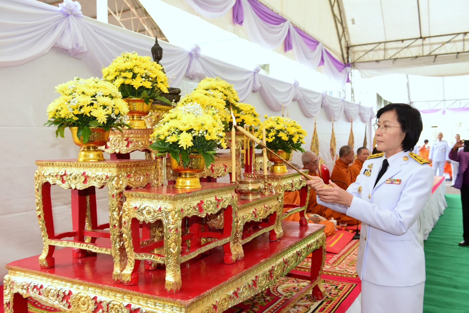 พิธีเริ่มจากผู้ว่าราชการจังหวัดราชบุรี จุดธูปเทียนบูชาพระรัตนตรัย ถวายคำนับและถวายธูปเทียนแพหน้าพระฉายาลักษณ์สมเด็จพระนางเจ้าฯ พระบรมราชินี เจ้าหน้าที่อาราธนาศีล ภายในพิธีมี พระธรรมปัญญาภรณ์ ที่ปรึกษาเจ้าคณะภาค 15 เจ้าอาวาสวัดมหาธาตุวรวิหาร จังหวัดราชบุรี เป็นประธานฝ่ายสงฆ์ นำพระสงฆ์สมณศักดิ์ รวม 10 รูป เจริญพระพุทธมนต์ จากนั้นผู้ว่าราชการจังหวัดราชบุรีนำข้าราชการ และประชาชนทุกหมู่เหล่า ตักบาตรข้าวสารอาหารแห้งแด่พระสงฆ์ 48 รูป
