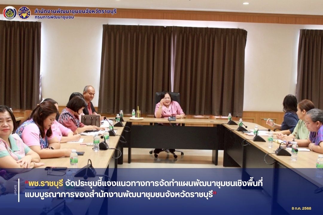 💠 นางทศมนพร พุทธจันทรา พัฒนาการจังหวัดราชบุรี เป็นประธานการประชุมชี้แจงแนวทางการจัดทำแผนพัฒนาชุมชนเชิงพื้นที่แบบบูรณาการของสำนักงานพัฒนาชุมชนจังหวัดราชบุรี ระยะ 3 ปี (พ.ศ.2568-2570) เพื่อให้สอดคล้องและเป็นไปตามแนวทางของแผนพัฒนาจังหวัด ภารกิจหลัก 14 ประการของกรมการพัฒนาชุมชน และนโยบายของรัฐบาล เพื่อให้บรรลุเป้าหมายที่กำหนด โดยมีนายสรฤทธ จันสุข ผู้อำนวยการกลุ่มงานยุทธศาสตร์การพัฒนาชุมชน ชี้แจงวัตถุประสงค์ของกิจกรรมฯ โดยกลุ่มเป้าหมาย ประกอบด้วย ผู้อำนวยการกลุ่มงาน พัฒนาการอำเภอทุกอำเภอ นักวิชาการพัฒนาชุมชนจังหวัด และนักวิชาการพัฒนาชุมชนอำเภอ เข้าร่วมการประชุม