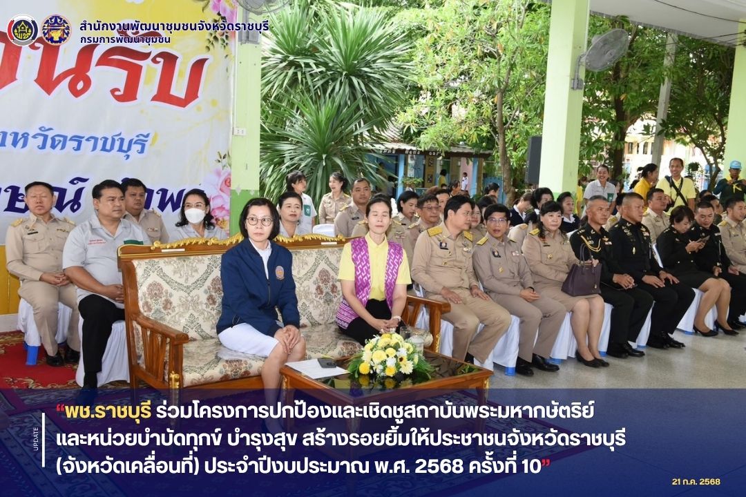 📣 พช.ราชบุรี ร่วมโครงการปกป้องและเชิดชูสถาบันพระมหากษัตริย์ และหน่วยบำบัดทุกข์ บำรุงสุข สร้างรอยยิ้มให้ประชาชนจังหวัดราชบุรี (จังหวัดเคลื่อนที่) ประจำปีงบประมาณ พ.ศ. 2568 ครั้งที่ 10