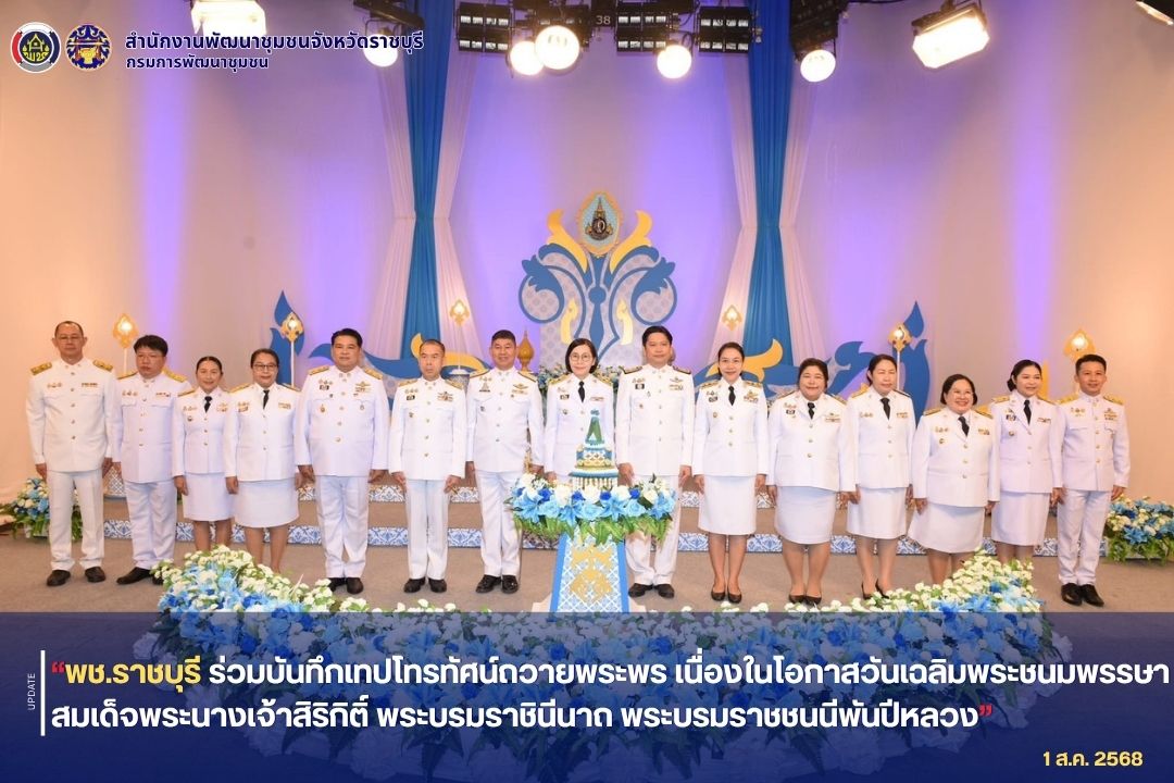 💠 นางทศมนพร พุทธจันทรา พัฒนาการจังหวัดราชบุรี ร่วมบันทึกเทปโทรทัศน์ถวายพระพร เนื่องในโอกาสวันเฉลิมพระชนมพรรษาสมเด็จพระนางเจ้าสิริกิติ์ พระบรมราชินีนาถ พระบรมราชชนนีพันปีหลวง เนื่องในโอกาสวันเฉลิมพระชนมพรรษา 12 สิงหาคม 2568 นำโดย นางสาวฐิติลักษณ์ คำพา ผู้ว่าราชการจังหวัดราชบุรี พร้อมด้วย นายคมกริช เจริญพัฒนสมบัติ รองผู้ว่าราชการจังหวัดราชบุรี นางสาววริษฐา สงวนเสริมศรี รองผู้ว่าราชการจังหวัดราชบุรี นายพุทธพงษ์ สุริยะสิงห์ รองผู้ว่าราชการจังหวัดราชบุรี และหัวหน้าส่วนราชการ เพื่อแสดงความจงรักภักดีและสำนึกในพระมหากรุณาธิคุณอย่างหาที่สุดมิได้