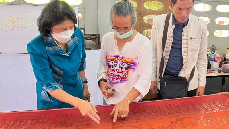 ?พช.ราชบุรี ติดตามความก้าวหน้าการพัฒนาลายผ้า ผู้ผลิต ผู้ประกอบการ OTOP ประเภทผ้า เตรียมประกวดผ้าลายพระราชทาน “ผ้าลายดอกรักราชกัญญา” สนองพระดำริ สมเด็จพระเจ้าลูกเธอ เจ้าฟ้าสิริวัณณวรี นารีรัตนราชกัญญา