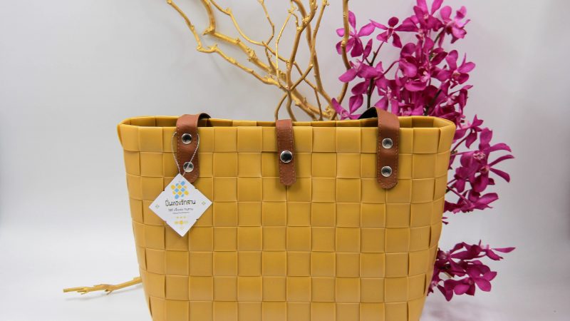 กระเป๋าหิ้วเส้นพลาสติก กลุ่มแม่บ้านจักสานกระเป๋าเส้นพลา [...]