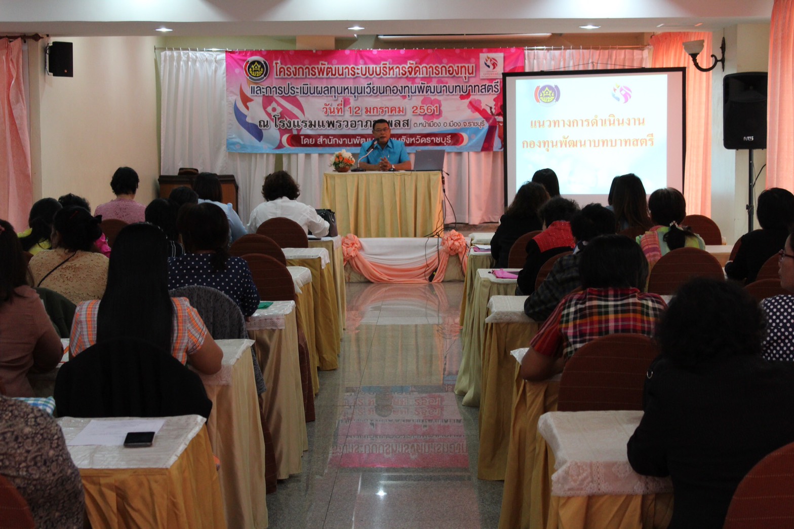 จังหวัดราชบุรี ดำเนินการจัดโครงการพัฒนาระบบบริหารจัดการกองทุน และการประเมินผลทุนหมุนเวียนกองทุนพัฒนาบทบาทสตรี