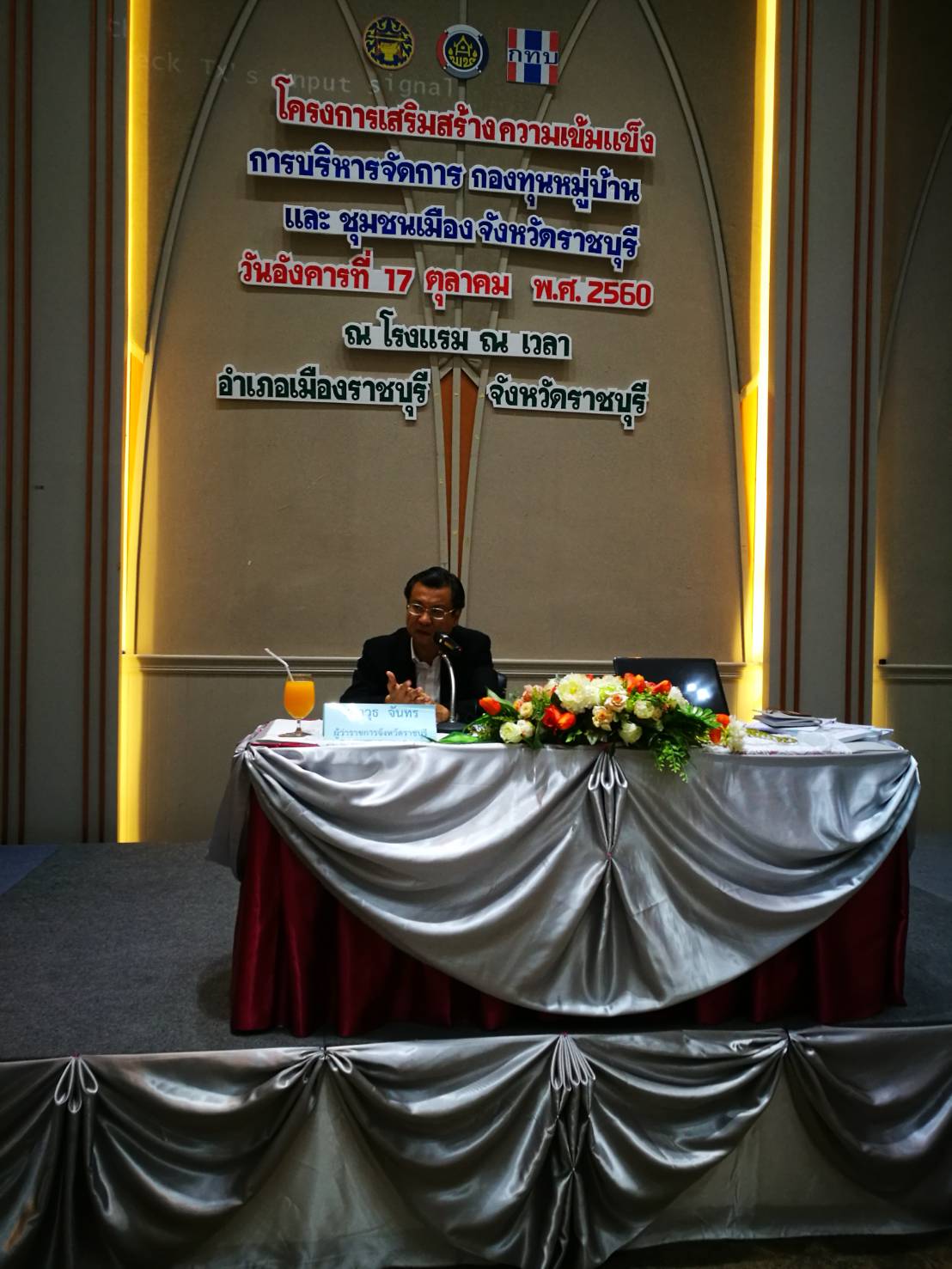 วันที่ 17 ตุลาคม 2561   เวลา 09.00 น.  นายชยาวุธ   จันทร  ผู้ว่าราชการจังหวัดราชบุรี เป็นประธานเปิดการอบรมคณะกรมการกองทุนหมู่บ้านฯตามโครงการเสริมสร้างความเข้มแข็งการบริหารจัดการกองทุนหมู่บ้านและชุมชนเมือง จังหวัดราชบุรี ณ โรงแรม ณ เวลา อำเภอเมือง  จังหวัดราชบุรี  ดำเนินการโดย สำนักงานพัฒนาชุมชนจังหวัดราชบุรี