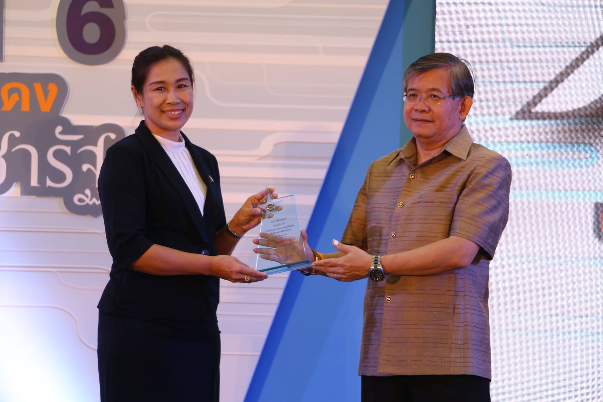 นางสาวนิภา ทองก้อน หัวหน้ากลุ่มงานสารสนเทศการพัฒนาชมุชนจังหวัดราชบุรี รับรางวัลการจัดการสารสนเทศต้นแบบเพื่อการพัฒนาคุณภาพชีวิต (ภาคกลาง) ในงาน CD Day