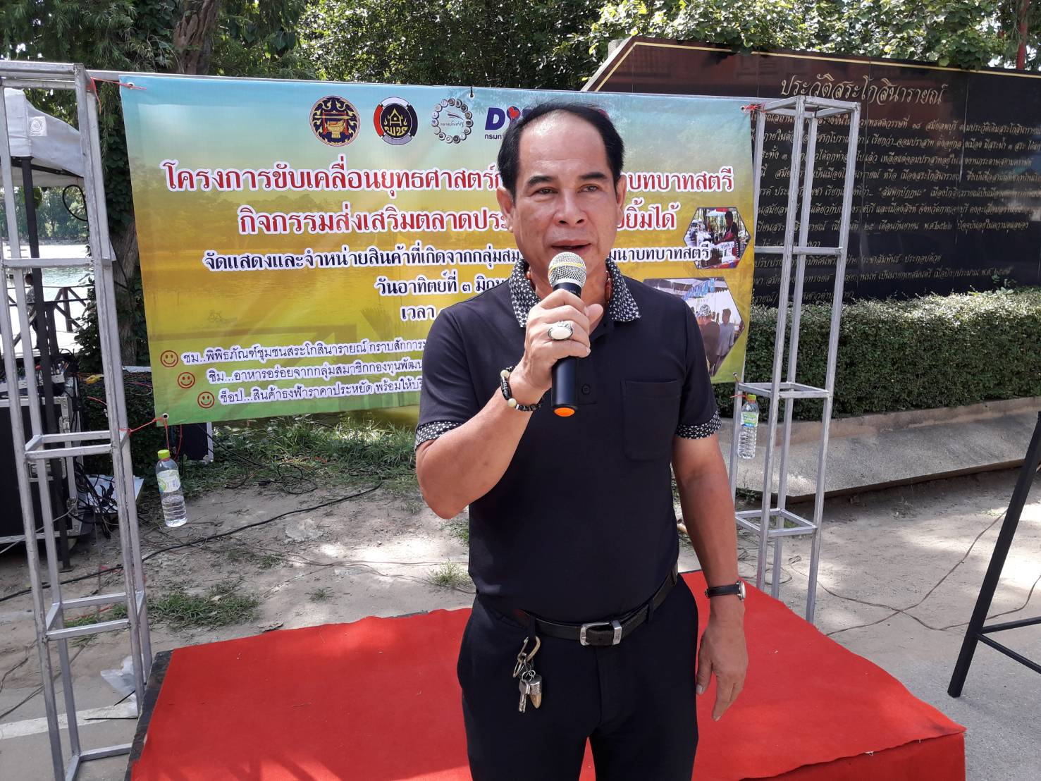 วันที่ 3 มิถุนายน 2561 สำนักงานพัฒนาชุมชนอำเภอบ้านโป่ง ร่วมกับ คณะกรรมการพัฒนาสตรีอำเภอบ้านโป่ง คณะทำงานกองทุนพัฒนาสตรีอำเภอบ้านโป่ง และเทศบาลเมืองท่าผา จัดกิจกรรมจัดแสดงและจำหน่ายสินค้าจากกลุ่มสมาชิกกองทุนพัฒนาบทบาทสตรี จำนวน 20 บูธ และจำหน่ายสินค้าธงฟ้าราคาประหยัด ณ ตลาดประชารัฐคนไทยยิ้มได้ สระโกสินารายณ์ ตำบลท่าผา ยอดรายได้จากการจำหน่าย กว่า 70,000 บาท
